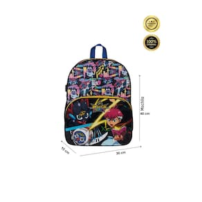 Kit Escolar Mazica Mochila Costas + Estojo Anime Mochila de Costas: Confeccionada em Poliéster Alças de costas reguláveis e alça de mão 2 compartimentos espaçosos 2 bolsos laterais para garrafa Design exclusivo Fechamento em zíper Medidas aproximadas: Altura: 40 cm Largura: 15 cm Comprimento: 30 cm Estojo simples: Confeccionado em Poliéster Fechamento em zíper 1 compartimento Design exclusivo Medidas aproximadas: Altura: 10 cm Largura: 7 cm Comprimento: 22 cm CUIDADOS: - Guarde em um local seco e arejado evitando locais úmidos. - Evite colocar excesso de peso no produto para não forçar os zíperes e costuras. - Proteja os objetos cortantes e/ou pontiagudos evitando o contato direto com o produto. - Evitar altas temperaturas. - Cores claras poderão manchar quando em contato com outros objetos ou roupas de cores pigmentadas.
