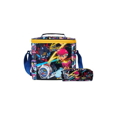 Kit Escolar Mazica Party Lancheira + Estojo Anime Lancheira Térmica: Confeccionada em Poliéster Isolamento térmico Alça de mão e alça transversal Design exclusivo Fechamento em zíper Medidas aproximadas: Altura: 22 cm Largura: 8 cm Comprimento: 18 cm Estojo simples: Confeccionado em Poliéster Fechamento em zíper 1 compartimento Design exclusivo Medidas aproximadas: Altura: 10 cm Largura: 7 cm Comprimento: 22 cm CUIDADOS: - Guarde em um local seco e arejado evitando locais úmidos. - Evite colocar excesso de peso no produto para não forçar os zíperes e costuras. - Proteja os objetos cortantes e/ou pontiagudos evitando o contato direto com o produto. - Evitar altas temperaturas. - Cores claras poderão manchar quando em contato com outros objetos ou roupas de cores pigmentadas.