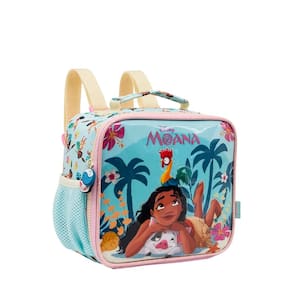 2. Lancheira Escolar Moana Disney – Aventura e Frescor na Hora do Lanche! -Frente em PVC vincado com glitter; -Zíper tratorado; -Puxadores emborrachados personalizados; -Alça ajustável; -Bolso lateral em mesh; -Forro em PEVA – melhor conservação dos alimentos; -Material: Poliéster 420D.