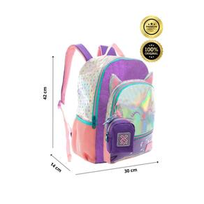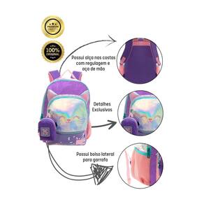 Completo e prático: Tudo o que sua filha precisa para a escola em um único kit. Design exclusivo e fashion: A gatinha holográfica é a sensação do momento e este kit traz o estilo para a escola. Conforto e praticidade: Alças acolchoadas e compartimentos garantem o conforto e a organização. Durabilidade: Materiais de alta qualidade garantem longa vida útil. Perfeito para presente: Ideal para aniversários, volta às aulas ou qualquer outra ocasião especial.