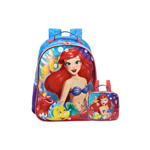 Ideal para as pequenas fãs da Pequena Sereia, este kit traz tudo o que sua filha precisa para a escola com muito estilo e organização. A mochila de costas com duplo compartimento e a lancheira prática, todos personalizados com a imagem da Ariel, vão encantar qualquer pequena sereia.