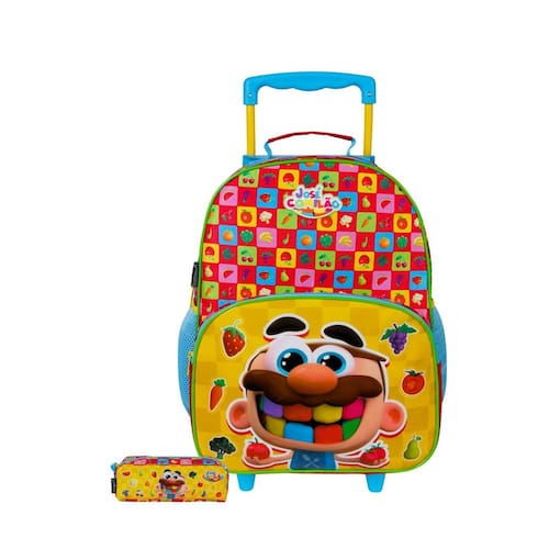 Kit Escolar Mochila De Rodas + Estojo José Comilão Mochila de Rodinha: Confeccionada em Poliéster Fechamento em zíper 2 compartimentos espaçosos 2 bolsos laterais para garrafa Possui RODAS e ALÇA DE MÃO Design exclusivo Medidas aproximadas: Altura: 40 cm Largura: 15 cm Comprimento: 30 cm