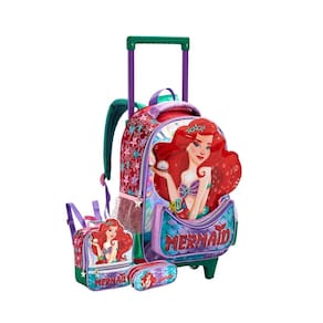 Mochila de Rodinha e Costas 2em1 Sereia Mar Produzido em poliéster 1 divisão grande 2 bolsos laterais em redinha Alças acolchoadas de Costas Alça de carrinho com 02 rodinhas 1 bolso frontal Ziperes com puxadores personalizados Estampa estilizada Dimensões: 40 x 29 x 13 cm alt x larg x prof ; Lancheira Térmica Sereia Fundo do Mar Produzido em poliéster Possui alças de costas Material interno térmico Ziperes com puxadores personalizados Estampa estilizada Não acompanha potinho e garrafinha Dimensões: 22 x 20 x 8cm alt x larg x prof ; Estojo sereia Fundo do Mar 02 compartimentos Dimensões: 15 x 21 x6 cm CUIDADOS: - Guarde em um local seco e arejado evitando locais úmidos. - Evite colocar excesso de peso no produto para não forçar os zíperes e costuras. - Proteja os objetos cortantes e/ou pontiagudos evitando o contato direto com o produto. - Evitar altas temperaturas. - Cores claras poderão manchar quando em contato com outros objetos ou roupas de cores pigmentadas.