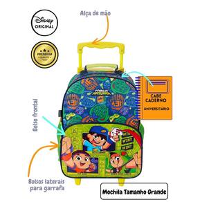 Mochila de Rodas Escolar Família Arqueira Produzido em poliéster 1 divisão grande 1 bolso de redinha Ziperes com puxadores personalizados Estampa estilizada
