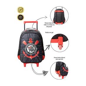 Kit Escolar Mochila Rodas+Lancheira+Mochila Saco Corinthians