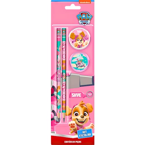 Descrição do produto : Leve para a escola a diversão e o encanto da Patrulha Canina com o kit escolar da Skye! Perfeito para crianças que adoram essa turma de heróis, esse kit traz 4 peças essenciais para o dia a dia escolar. : Detalhes técnicos : Marca : SUMMIT Código: : 117277 Dimensões do Produto : 26 X 8 X 2 CM : Contém: 3 Lápis Preto HB: 2 lapis HB com corpo arredondado + 1 borracha de textura macia e livre de PVC + 1 apontador com lamina antiferrugem e com deposito que evita sujeiras. : Tipo de material : Plastico : Código de barras : 7908673905567 :