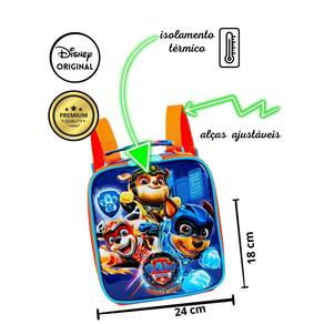 Lancheira Térmica Paw Patrol Filme Produzida em poliéster resistente e estampado. Painel frontal em PVC vincado . Compartimento com revestimento em material que ajuda a manter o frescor dos alimentos por mais tempo. Zíper com puxadores personalizados e piping forrado. Alças reguláveis com faixa para acoplar o produto na haste da mala de rodinhas. Produto certificado. DIMENSÕES: - Largura: 19cm - Altura: 21cm - Comprimento: 10cm PESO: 200gr