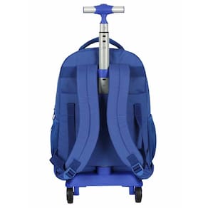 Características do produto Mochila de rodinha: Duplo compartimento Zíper resistente de alta qualidade tratorado Frente com estampa exclusiva Rodinhas silenciosas e resistentes Base rígida reforçada emborrachada Alça retrátil em alumínio Alças acolchoadas e confortáveis Bolso frontal amplo Fechamento em zíper com puxadores personalizados Laterais com bolso para garrafa em mesh Material durável Modelagem leve e espaçosa Logo emborrachado Chaveiro exclusivo Dimensões aproximadas