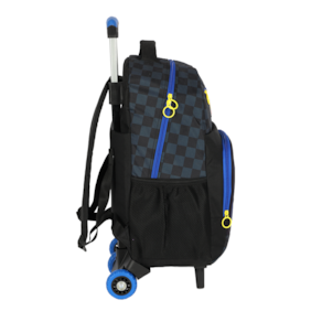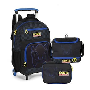 Mochila de Rodinha Sonic Estampa exclusiva com o rosto do Sonic em detalhe azul neon. Estrutura reforçada com rodinhas resistentes e alça retrátil para facilitar o transporte. Bolsos laterais em tela + amplo espaço interno. Puxadores de zíper personalizados em formato de anel dourado.