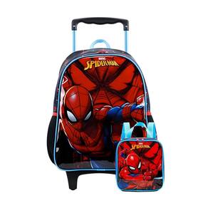 Kit Escolar Spider Man M Mochila de Rodas + Lancheira Mochila de rodas M Spider Man Em tamanho 14, produzida em poliéster resistente e estampado. Painel frontal PVC Cristal - Compartimento principal amplo, 2 bolsos laterais mesh, zíper com puxadores simples e alça de mão em nylon. Carrinho em metal com travas. DIMENSÕES: - Largura: 27cm - Altura: 35cm - Comprimento: 14cm PESO: 700gr