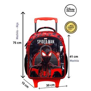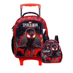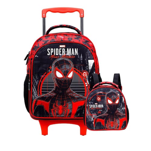 Kit Escolar Spider Man Mochila com Rodas Grande + Lancheira Mochila com rodas Spider Man: Produzido em poliéster 1 divisão grande 02 bolsos laterais de redinha Ziperes com puxadores personalizados Estampa estilizada Dimensões aproximadas: 40 x 29 x 13 cm alt x larg x prof ; Lancheira Spider Man: Produzido em poliéster Possui alças de costas Material interno térmico Ziperes com puxadores personalizados Estampa estilizada Dimensões aproximadas: 22 x 20 x 8cm alt x larg x prof ; CUIDADOS: - Guarde em um local seco e arejado evitando locais úmidos. - Evite colocar excesso de peso no produto para não forçar os zíperes e costuras. - Proteja os objetos cortantes e/ou pontiagudos evitando o contato direto com o produto. - Evitar altas temperaturas. - Cores claras poderão manchar quando em contato com outros objetos ou roupas de cores pigmentadas.