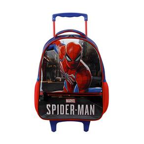 Mochila de Rodas M Spider Man Em tamanho 14 , produzida em poliéster resistente e estampado. Painel frontal em PVC vincado - Compartimento principal amplo e 1 bolso frontal com ziper trator , 2 bolsos laterais mesh, zíper com puxadores personalizados, alça de mão em nylon com mesh e piping forrado. Carrinho em metal com travas. DIMENSÕES: - Largura: 27cm - Altura: 35cm - Comprimento: 14cm PESO: 800gr