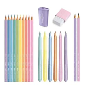 Para quem ama tons suaves e elegantes, o Kit Escolar Tom Pastel 20 Peças da Faber Castell é perfeito para sua obra de arte, pois combina funcionalidade e estilo em um único conjunto, aproveite!