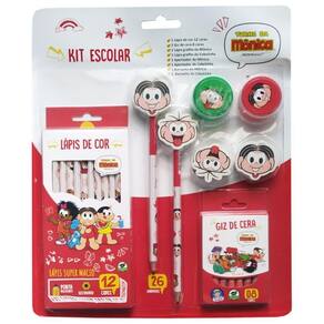 Contém - 01 und - lápis de cor turma da mônica 12 cores 01 und - caixa de giz de cera 8 cores 02 und - lápis grafite 02 und - apontadores redondos. 04 und - borrachas. Enviamos modelos personalizado com vários personagens da turminha mais querida. Kit escolar completo ideal para crianças. O lápis de cor de 12 cores é fabricado em resina plástica, contém corpo confortável e pontas resistentes que não quebram facilmente. É ideal para ser utilizado em projetos artísticos e por estudantes de várias idades. Composição: isenta de pvc; carga inerte e pigmentos atóxicos. Dimensões aproximadas da embalagem a x l: 32 cm x 27 cm