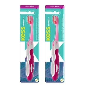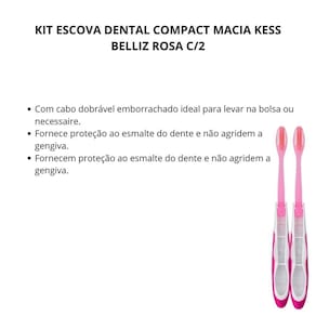 A escova Kess Compact tem cerdas macias, polidas e com pontas arredondadas que fornecem proteção ao esmalte do dente e não agridem a gengiva. Com cabo dobrável emborrachado, é ideal para levar na bolsa ou necessaire!