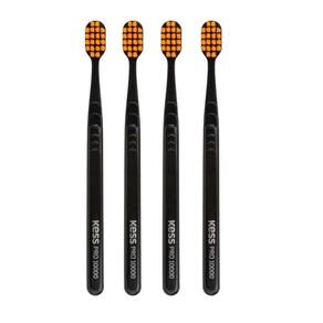 Escova dental com cerdas feitas de um material diferenciado, importado da Alemanha, que é tão fino quanto um fio de cabelo! Por isso, são ainda mais macias que as tradicionais, que tem cerdas de nylon.E o resultado disso é LIMPEZA EFICIENTE e CONFORTÁVEL!Devido a quantidade e a espessura das cerdas, as escovas da linha Kess Pro atingem áreas inacessíveis às escovas comuns. As cerdas especiais ainda conseguem neutralizar a força excessiva durante a escovação, agredindo menos as gengivas.