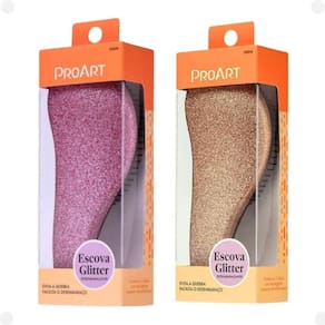 A escova Glitter Desembaraçante possui design anatômico que facilita a manuseio. As cerdas maiores desembaraçam enquanto as menores massageiam o couro cabeludo.