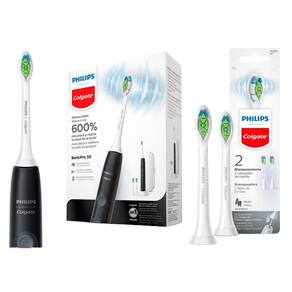 O kit contém: Escova Elétrica SonicPro 50 + Refil SonicPro Branqueadora com 2 unidades