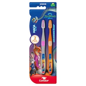 A Escova Dental Infantil Macia Zootopia 2 Condor Júnior Cabeça P 2 Unidades deixa a escovação mais divertida, colorida e cheia de imaginação. Com cerdas macias que limpam sem agredir a gengiva e cabeça pequena que alcança até os dentes do fundo, é ideal para crianças. Seu cabo ergonômico emborrachado garante mais segurança e firmeza na hora da escovação.
