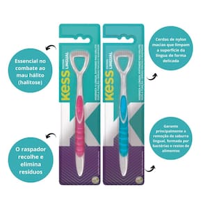 A Escova para Higienização Lingual é essencial no combate ao mau hálito (halitose). O design da Escova proporciona dupla função: as cerdas de nylon macias limpam a superfície da língua de forma delicada e o raspador recolhe e elimina resíduos. Garante principalmente a remoção da saburra lingual, formada sobretudo por bactérias e restos de alimentos que se acumulam e deixam a língua com aspecto esbranquiçado.