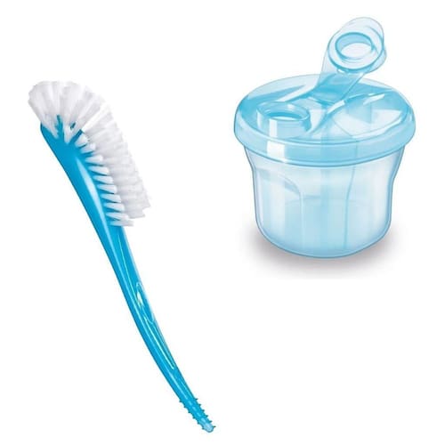 Kit Escova para Mamadeira e Dosador de Leite em Pó - Azul