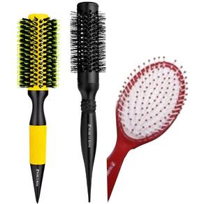 Corpo revestido em cerâmica, com tufagem reta que desliza mais facilmente pelos fios sem puxar. Cabo antideslizante,Emborrachado anatômico, pontiagudo que permite fazer a separação de mechas. Mantém o calor do secado de forma uniforme e prolongado, agilizando assim a secagem. Cerdas com menos espaço (mais cheia) do que as escovas comuns, permitindo adentrar bem nos cabelos, promovendo uma excelente finalização do procedimento realizado. Seca, alisa, modela e finaliza. Para todos os tipos de químicas.