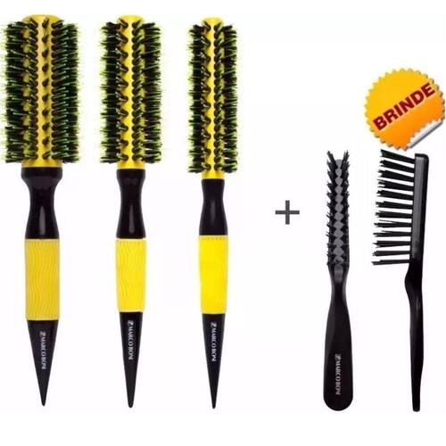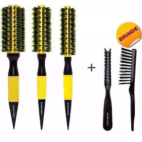KIT COM 3 ESCOVAS TÉRMICAS DE CERÂMICA YELLOW - MARCO BONI 01 UN Escova Profissional térmica cerâmica Yellow (M) 57mm 01 UN Escova Profissional térmica cerâmica Yellow (P) 47mm 01 UN Escova Profissional térmica cerâmica Yellow (PP) 35mm 01 UN Limpador de escovas Marco Boni Escova Profissional com base de cerâmica, agiliza secar os cabelos pois mantém a temperatura do secador. Com cabo emborrachado, anatômico, pontiagudo para auxiliar a separação de mechas. Cerdas de dupla altura de nylon e naturais de javali, que proporcionam maior tração aos fios. Desliza com mais facilidade nos cabelos. Seca, alisa, modela e finaliza. Para todos os tipos de químicas.