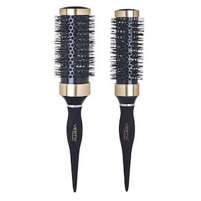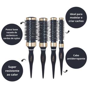 Escova Black and Gold possui base vazada de cerâmica e cerdas de nylon resistentes ao calor. Ideal para modelar e criar cachos. Cabo antiderrapante.