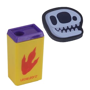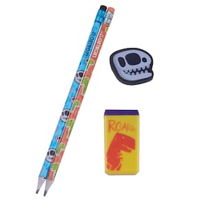 Kit Escrita Dino com 2 Lápis Apontador e Borracha Leonora