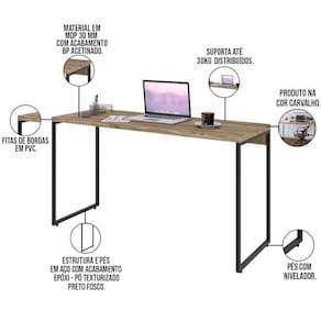 Com o Kit Escritório Estante Areta 3 Prateleiras Mesa Industrial Aspen 135cm C01 Carvalho - Lyam Decor, o conceito industrial ficará evidente no seu ambiente, tornando o mesmo muito mais moderno, sofisticado e organizado, garantindo isso com 03 prateleiras que deixam tudo prático e funcional. Uma característica muito forte dos móveis industriais é a união do tubular de estrutura exposta com a madeira, que dão todo o charme para agregar no estilo que está entre os mais buscados no ramo de arquitetura e decoração.