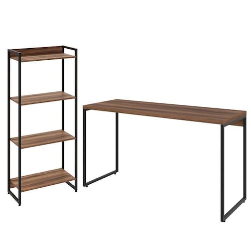 Com o Kit Escritório Estante Areta 4 Prateleiras com Mesa Industrial Aspen 135cm C01 Nogal - Lyam Decor , o conceito industrial ficará evidente no seu ambiente, tornando o mesmo muito mais moderno, sofisticado e organizado, garantindo isso com 04 prateleiras que deixam tudo prático e funcional. Uma característica muito forte dos móveis industriais é a união do tubular de estrutura exposta com a madeira, que dão todo o charme para agregar no estilo que está entre os mais buscados no ramo de arquitetura e decoração.