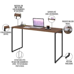 Com o Kit Escritório Estante Areta 5 Prateleiras com Mesa Industrial Aspen 135cm C01 Nogal - Lyam Decor, o conceito industrial ficará evidente no seu ambiente, tornando o mesmo muito mais moderno, sofisticado e organizado, garantindo isso com 05 prateleiras que deixam tudo prático e funcional. Uma característica muito forte dos móveis industriais é a união do tubular de estrutura exposta com a madeira, que dão todo o charme para agregar no estilo que está entre os mais buscados no ramo de arquitetura e decoração.