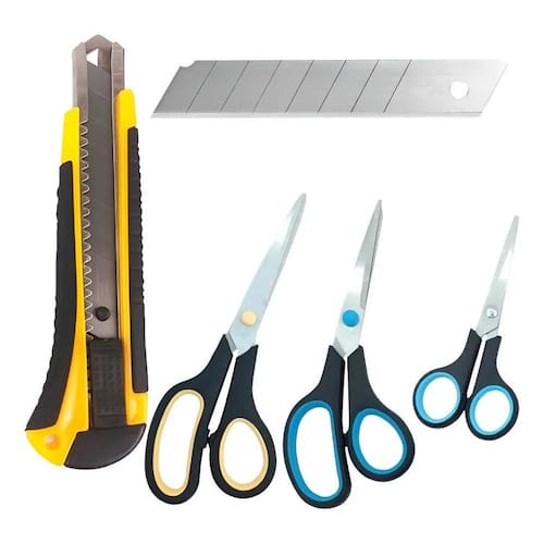 Kit Escritório Estilete Profissional + Tesouras Multiuso