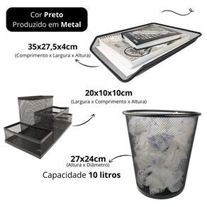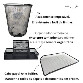 Deixe a bagunça para trás e desfrute da organização impecável proporcionada pelo Kit Organizadores de Escritório Preto.