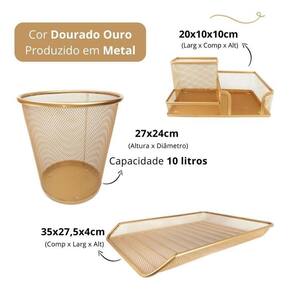 Kit escritório lixeira, organizador de mesa, bandeja organizadora dourado ouro Kit escritório lixeira, organizador de mesa, bandeja organizadora dourado ouro