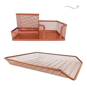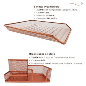 Kit escritório composto por: - 01 bandeja organizadora simples rose gold - 01 organizador de mesa com 3 partições rose gold