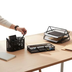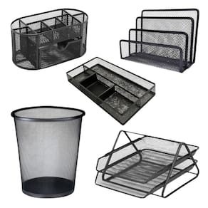 Kit Organizadores de Escritório em Metal - Bandejas, Cestos e Suportes Multiuso