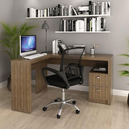 Mesa Escritório de canto Tecnomobili ME4129, possui 2 gavetas com amplo espaço para armazenar documentos, objetos pessoais e/ou acessórios, material em MDP, acabamento em BP, possui costas na cor do móvel. A cadeira tem estrutura em poliuretano de altíssima qualidade, que proporciona muito mais resistência, mesmo com o passar dos anos. O acabamento em verniz deixa o móvel mais bonito e dá mais destaque a decoração de toda a casa. Essa cadeira tem design versátil, assento confortável e vem com kit de montagem, para tudo ficar mais rápido e prático. Ela suporta até 120 kg de peso máximo, que dá mais tranquilidade ao sentar e tem 4 pés com rodízios em PU que não arranham o piso do cômodo. Acabamento: BP Altura do Conjunto: 85 cm Ambiente: Escritório Ambiente Principal: Escritório Cor: Nogal Informação Complementar: 1x Mesa para Escritório em L 2 Gavetas Me4129 Nogal Largura: 135,8 cm Altura: 74,5 cm Peso: 32,4 kg Profundidade: 113 cm Necessita Montagem: Sim