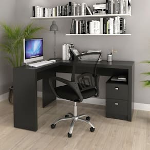 Mesa Escritório de canto Tecnomobili ME4129, possui 2 gavetas com amplo espaço para armazenar documentos, objetos pessoais e/ou acessórios, material em MDP, acabamento em BP, possui costas na cor do móvel. A cadeira tem estrutura em poliuretano de altíssima qualidade, que proporciona muito mais resistência, mesmo com o passar dos anos. O acabamento em verniz deixa o móvel mais bonito e dá mais destaque a decoração de toda a casa. Essa cadeira tem design versátil, assento confortável e vem com kit de montagem, para tudo ficar mais rápido e prático. Ela suporta até 120 kg de peso máximo, que dá mais tranquilidade ao sentar e tem 4 pés com rodízios em PU que não arranham o piso do cômodo. Acabamento: BP Melamínico Altura do Conjunto: 85 cm Ambiente: null Ambiente Principal: Escritório Cor: Preto Informação Complementar: 1x Mesa para Escritório em L 2 Gavetas Me4129 Preto Largura: 135,8 cm Altura: 74,5 cm Peso: 32,4 kg Profundidade: 113 cm Necessita Montagem: Sim