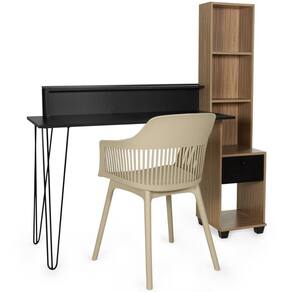 Kit Escrivaninha Hairpin Preta com Cadeira Estofada Marcela