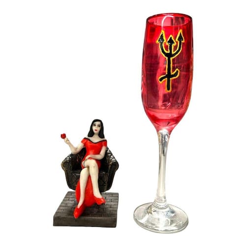 A Taça Pomba Gira da Bialluz é confeccionada em vidro, material que traz elegância a peça sem contar na alta qualidade que possui. Com detalhes luxosos que brilham e cores vivas que deixam a taça ainda mais maravilhosa. Nossa Taça Pomba Gira é muito especial e com certeza trará ótimas energias em sua vida.
