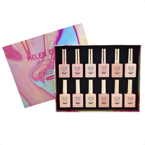 Caixa de esmalte em gel tons de nude cores atuais e realistas.