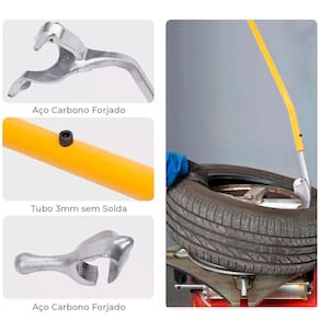 Kit Espátulas Naja Borracharia Truck Desmontar e Montar Pneus - Marca: Charbs - Referência: CH0306 - Kit de Espátulas para Caminhão Truck do Tipo Naja para montar e desmontar pneus sem Câmara - Indicado para pneus de 17.5 a 24.5 polegadas - Embalagem especial com 3 peças e proteção, isopor e todo cuidado necessário para seu produto chegar em excelente estado - Desmonte e monte Pneus Truck em menos de 3 minutos - Não danifica os talões do pneu - Acompanha 1 espátula 1.30mm 1 espátula 1.05 com trava para montar e desmontar pneu sem câmera de ônibus e caminhão - Dimensões: 100 x 28 x 22cm - Peso bruto: 14,26Kg - : 90 dias Itens inclusos: - 01 Espátula de desmontagem - 01 Espátula de montagem - 01 Trava para montagem