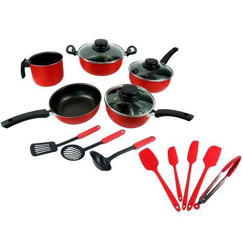 O kit de utensilios de cozinha totalmente de silicione, contém 5 peças e um conjunto de 5 Panelas Elegan é tudo que você precisa para preparar seus pratos prediletos, uma ótima escolha para quem quer equipar sua cozinha com produtos modernos e de boa qualidade, as panelas foram desenvolvida com alças térmicas e todo o conjunto é antiaderente para não deixar que os alimentos grudem no fundo das panelas, deixando tudo mais saboroso, além de ficar muito mais fácil na hora de lavar. Ótima para o preparo dos alimentos e com um fogão de cinco bocas, tudo pode ser preparado em sincronia . Possui tampas de vidro para você olhar o cozimento de seus alimentos com mais praticidade e rapidez. Além de incluir 3 utensílios de plástico para sua cozinha.