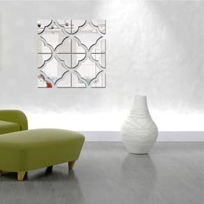 Kit Espelho Decorativo Acrílico Abstrato Moderno CARACTERÍSTICAS: - Modelo: AB15G - Espessura: 2 mm - Tamanho: 40 x 40 cm cada quadro - Tamanho Montado: 80 x 80 cm ACOMPANHA: 04 x Kit Espelho Decorativo Acrílico Abstrato Moderno APLICAÇÃO: - Material mais resistente que o vidro além de ser mais leve também por isso os espelhos em Acrílico são indicados para o uso onde se preza pela segurança. ONDE APLICAR: - Casa: Parede de quarto, sala, varanda, etc... - Móveis em geral - Lojas: Vitrine - Escritório - Escola - Creche CUIDADOS: - Nossos espelhos decorativos podem ser aplicados em qualquer superfície LISA, ideais para aplicação em paredes PLANAS, vidros, azulejos e onde mais sua imaginação mandar. - Utilize fitas dupla face para fixação dos espelhos. Kit já vai com as fitas. - Para limpeza utilizar flanela macia e água. - O acrílico espelho possuí uma PELÍCULA de proteção no lado espelhado. - Essa PELÍCULA a primeira vista pode causar a impressão de riscado ou embaçado as peças, mas é só removê-la após a instalação.