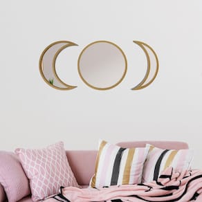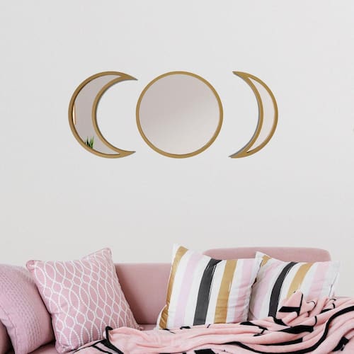 Se você gosta de decoração com itens minimalistas este espelho é uma ótima opção, pois é composto por três espelhos separados que remetem às fases da lua: cheia, minguante e crescente. Com moldura feita de madeira MDF na cor Preta, quando instalados em conjunto dão um toque de muita elegância, modernidade e personalidade à decoração do ambiente.