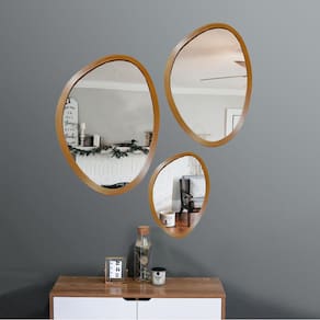 Kit Espelho Decorativo Orgânico Freijó 35X50 50X64 64X77 CmEspelhos que não distorcem a imagem, fabricados através do processo cooper-free, livre de metais pesados. Não causa prejuízos à saúde e ao meio ambiente.Corte do Espelho, o acabamento em forma contemporânea, só é obtida porque o corte é através de equipamentos ultra modernos. Moldura do Espelho, com acabamento em pintura PU.Incluso parafuso e bucha para instalação.Medidas: 35X50 Cm50X64 Cm64X77 Cm