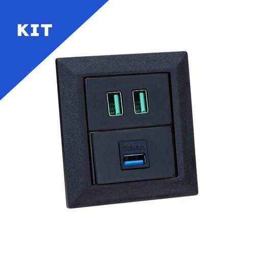 Kit Espelhos de Tomadas Duplo Chanfrado 2USB 4.9A 1USB DADOS - COR: PRETO