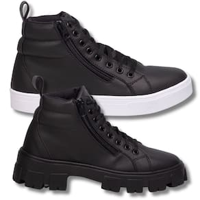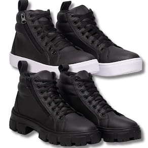 Kit Essencial: Bota Feminina Esporte Preta Para Dias Dinâmicos + Coturno Feminino Preto. - 38 - Preto