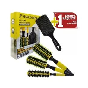 KIT PROFISSIONAL 3 ESCOVA CERAMICA RAQUETE FLEXIVEL MARCOBONIContém:01un Escova térmica cerâmica P 35mm01un Escova térmica cerâmica M 47mm01un Escova térmica cerâmica G 57mm01un Escova Raquete Escova Profissional com base de cerâmica, agiliza secar os cabelos pois mantém a temperatura do secador.Com cabo emborrachado, anatômico, pontiagudo para auxiliar a separação de mechas. Cerdas de dupla altura de nylon e naturais de javali, que proporcionam maior tração aos fios. Desliza com mais facilidade nos cabelos.Seca, alisa, modela e finaliza. Para todos os tipos de químicas.IMPORTANTE: Para conservar sua escova, o ideal é manter uma distância mínima de 7 a 10 centímetros do secador. Escova RaqueteA escova raquete desembaraçante tem cerdas flexiveis é excelente para cabelos finos, cacheados, com mega hair e peruca. Desembaraça o cabelo molhado sem quebrar o fio.Para conservar a sua escova armazene-a com cuidado para não amassar as cerdas.